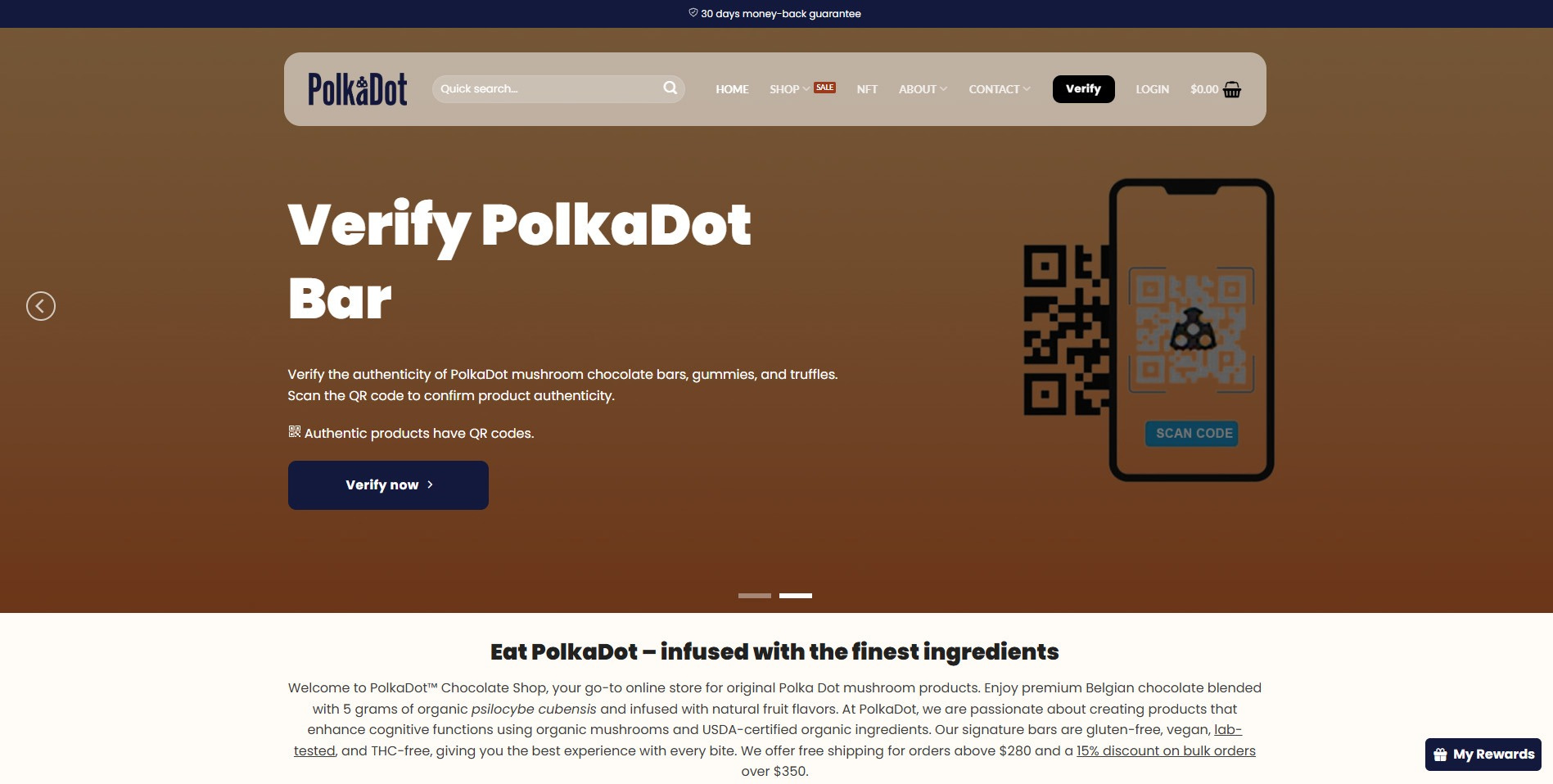 Always confirm the authenticity of Polka Dot shroom products before you buy by verifying with your smartphone. Every authentic Polkadot mushroom chocolate has a scratch-off verification sticker with a unique QR code, used to confirm the product’s authenticity.